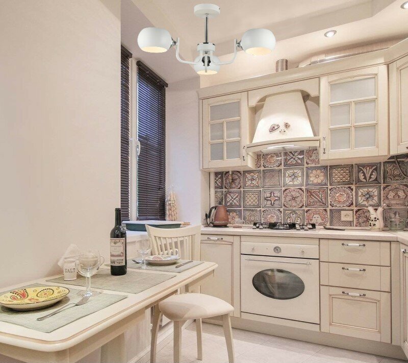 Плафоны располагаются близко к основанию конструкции и практически не занимают пространство, поэтому данный светильник идеально подходит для общего освещения комнаты с низкими потолками высотой до 2,6 метров.